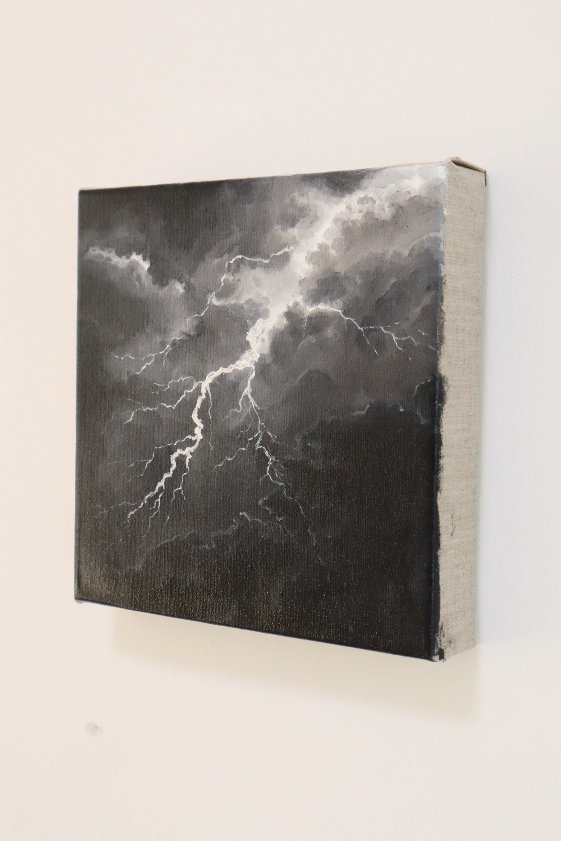 “Thunderbolt” captures the dramatic meeting of heaven and earth through bold black-and-white contrast.